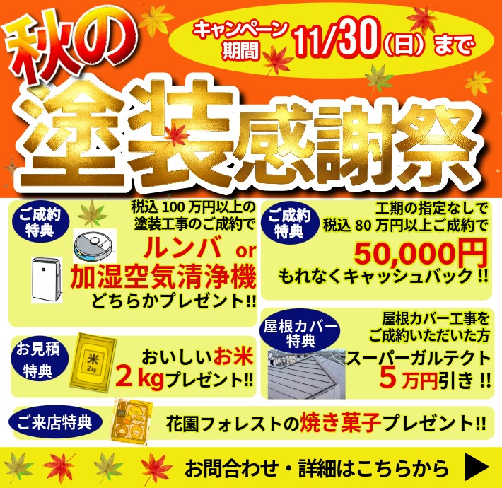【秋の塗装感謝祭】開催中です!! 2025年10月31日(金) ❤✧˖°⌖꙳✧˖°⌖꙳✧˖°⌖꙳✧˖°⌖꙳✧˖°⌖꙳✧˖°⌖꙳✧˖°꙳✧˖°⌖꙳✧˖°⌖꙳✧˖°⌖꙳✧˖°❤ ブログをご覧いただきましてありがとうございます。 埼玉県上尾市の外壁塗装・屋根塗装・屋根工・・・
